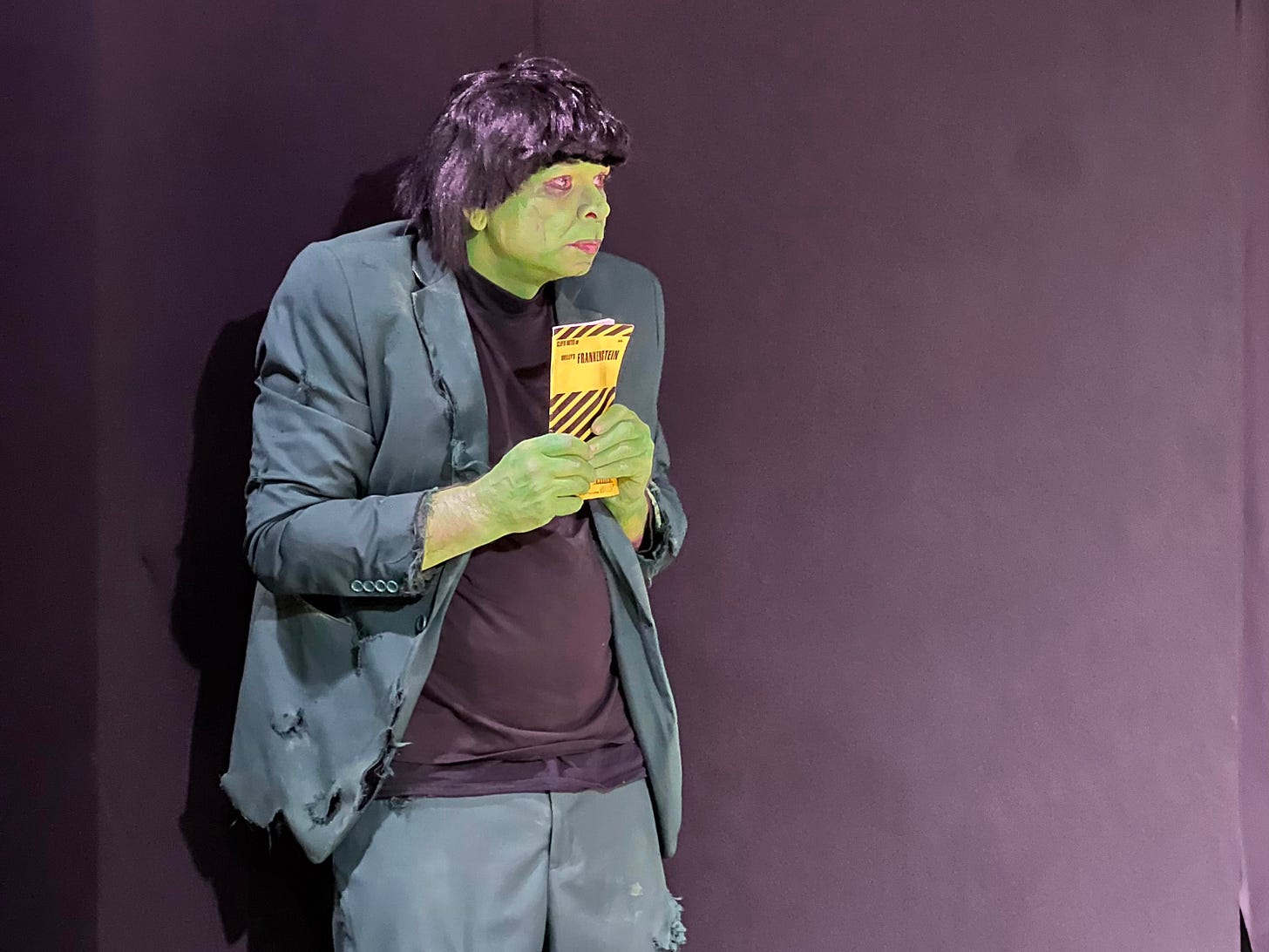 Written and directed by Meindl — and based loosely on his own experience growing up closeted in Indiana, he told me — it’s a fever dream of a production, with a surreal story grounded by powerful emotional beats. The teenage protagonist, Joseph, finds himself turning into Frankenstein’s monster, green skin and all, as he becomes a bully himself. “Frankenstein” author Mary Shelley makes an exhilarating appearance during a time-travel sequence to the early 1800s.